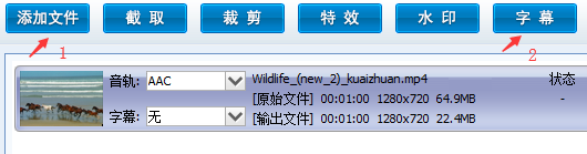 1:打开快转后 添加视频文件,然后选择 字幕 按钮